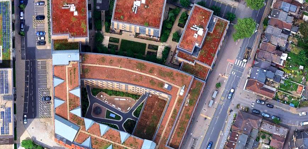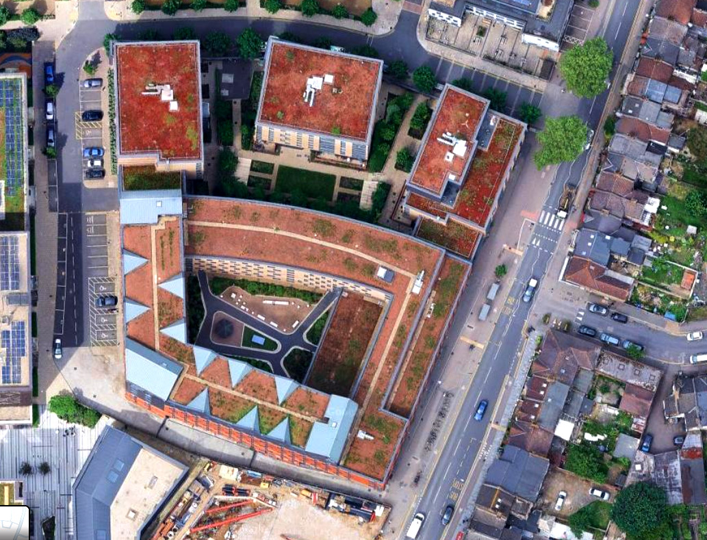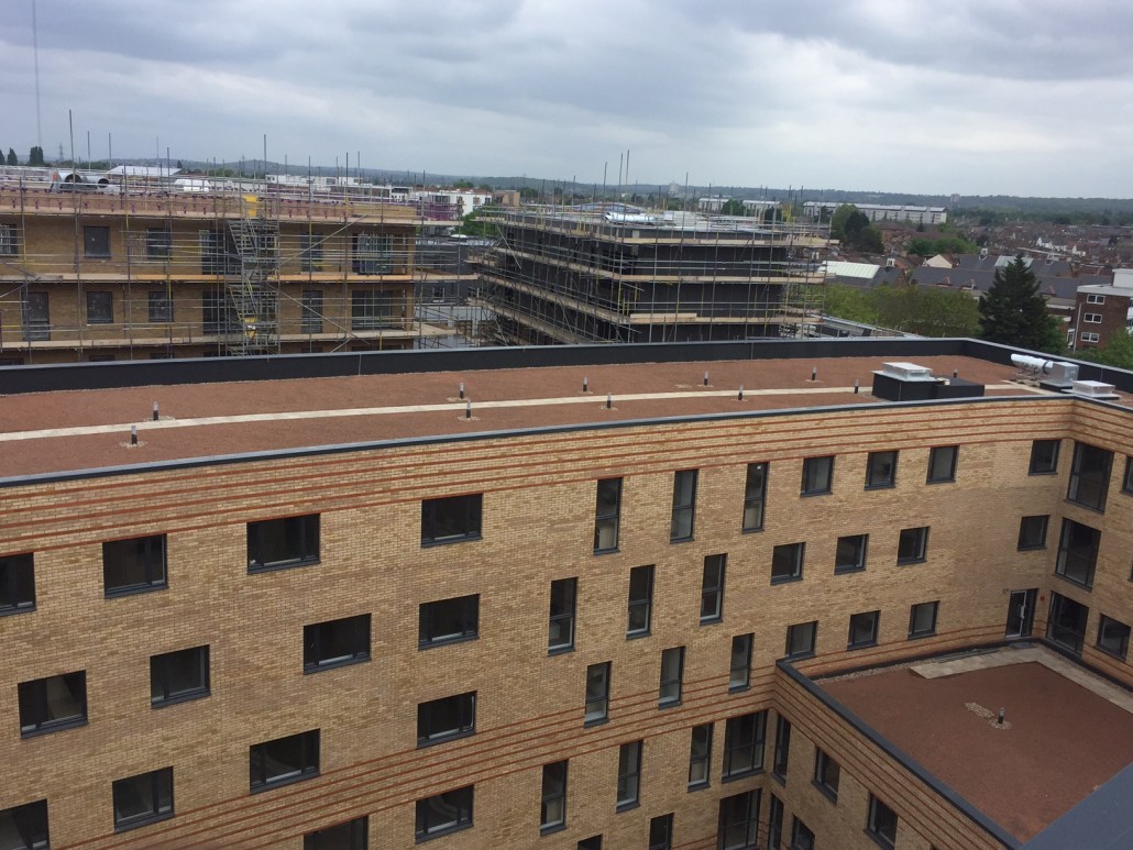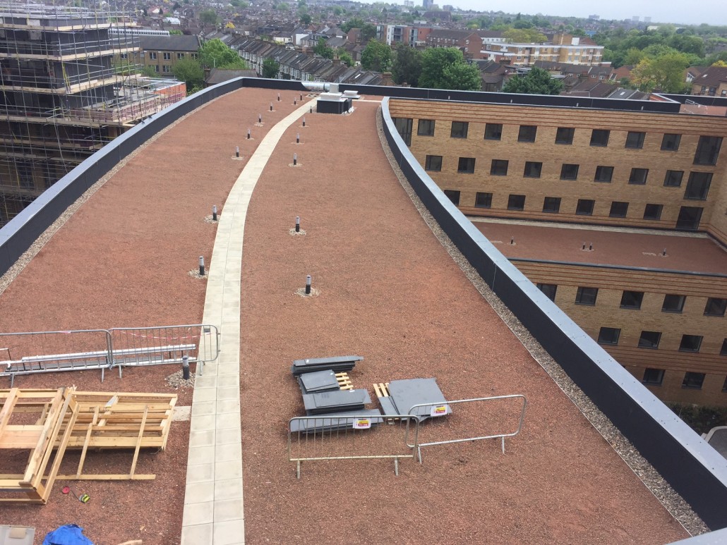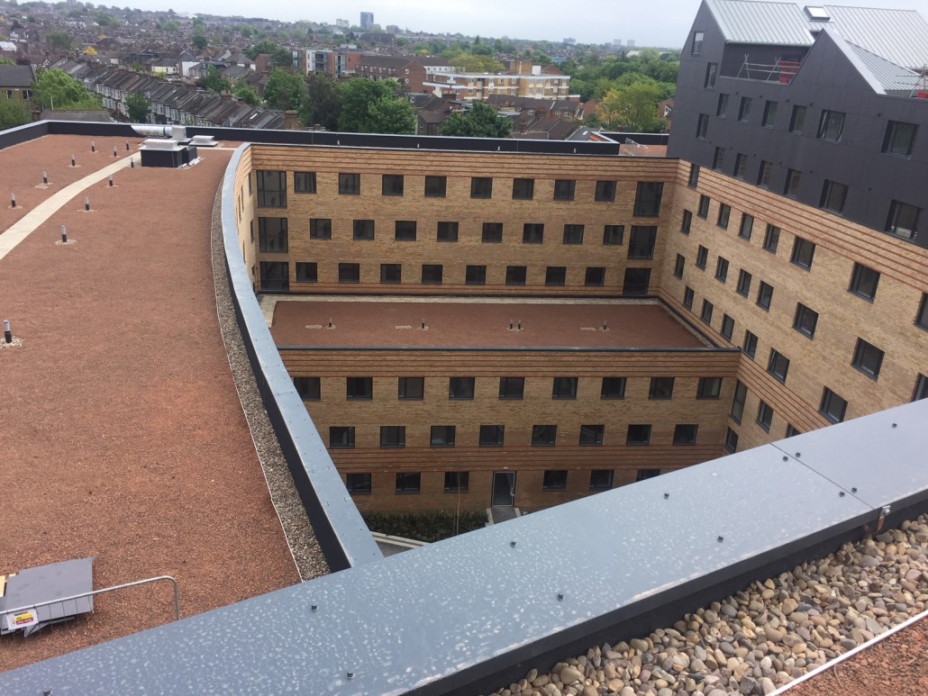 The installation team have been keeping up their fitness with this large green roof project for the impressive Mannequin House Student accomodation complex. This large set of student residential facilities based in Walthamstow, East London caters for many of the London located universities and colleges.